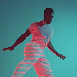 Interior Design – A dancer captured in motion with vibrant neon lighting. Dexign Matter Studio
