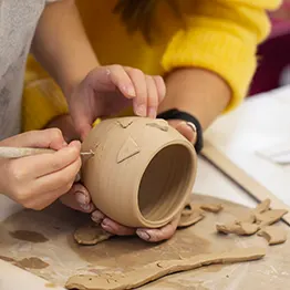 Interior Design – Hands working on a clay pot with decorative elements. Dexign Matter Studio