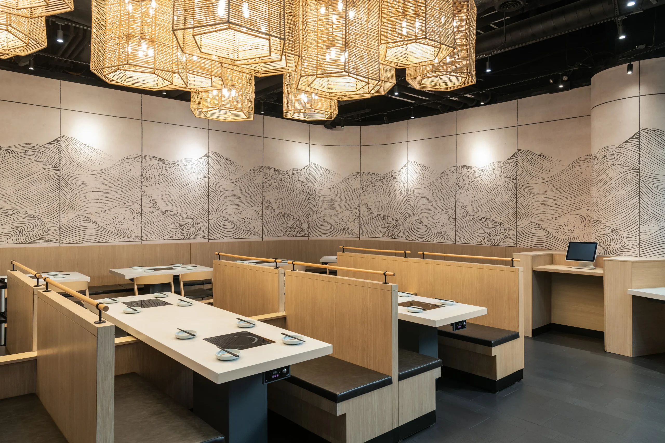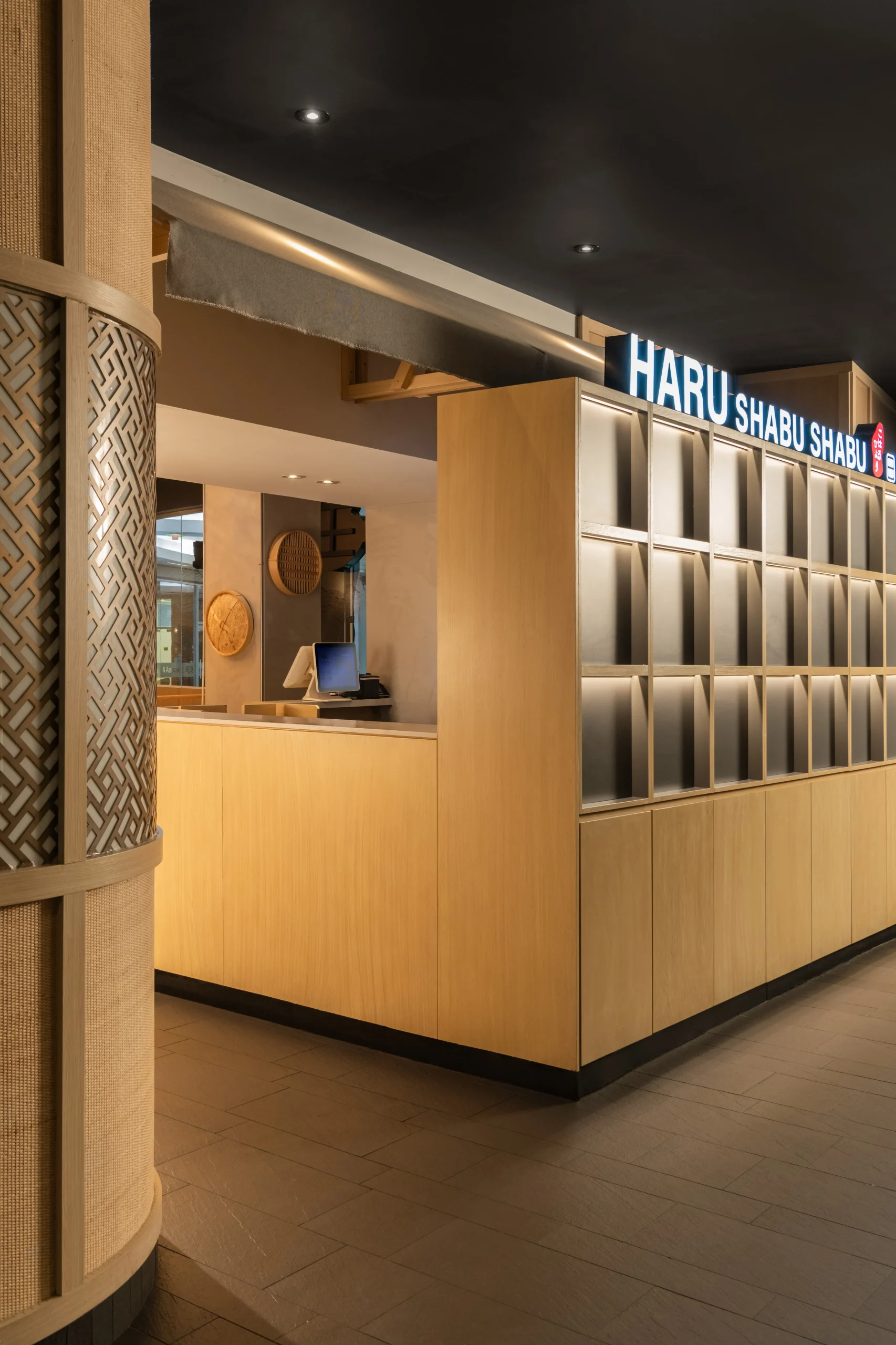 As part of the dining experience, a custom full height cabinetry where merchandises can be displayed covers the restaurants facade exclusively apart from a concealed entrance. This mysterious entryway offers a sensory journey into the heart of Japanese culture. Haru Shabu Shabu stands as a testament of our commitment to innovative and culturally immersive design practice.